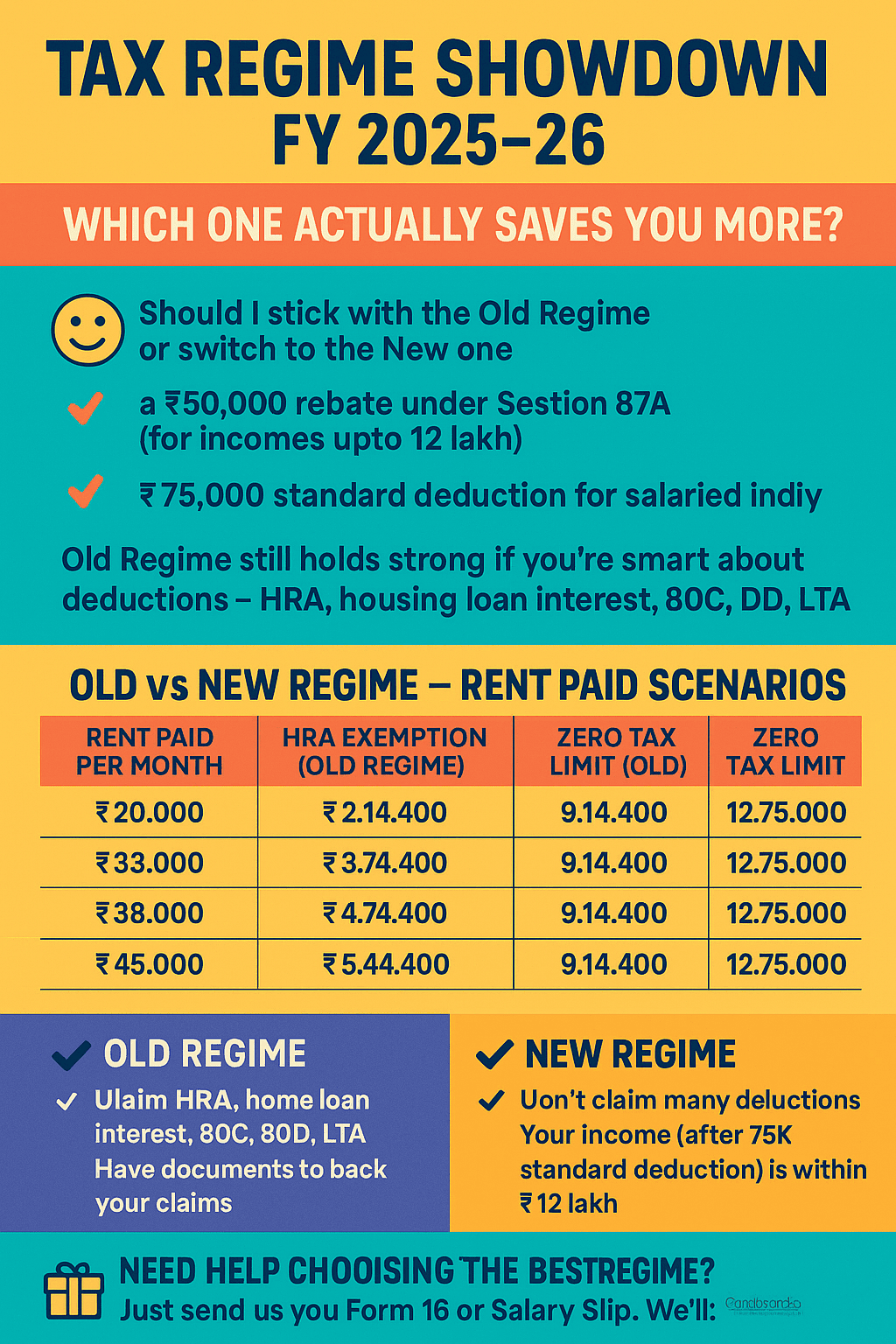 With the new income tax rules for FY 2025–26 kicking in, one big question is back on everyone’s mind — Should I stick with the Old Regime or switch to the New one?